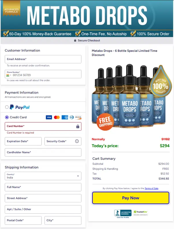 Once you have clicked the “Buy Now” button that is right below this text, you will be taken to the secure checkout page. Just enter your information, and you will then be given instant access to the entire Metabo Drops Official Website.